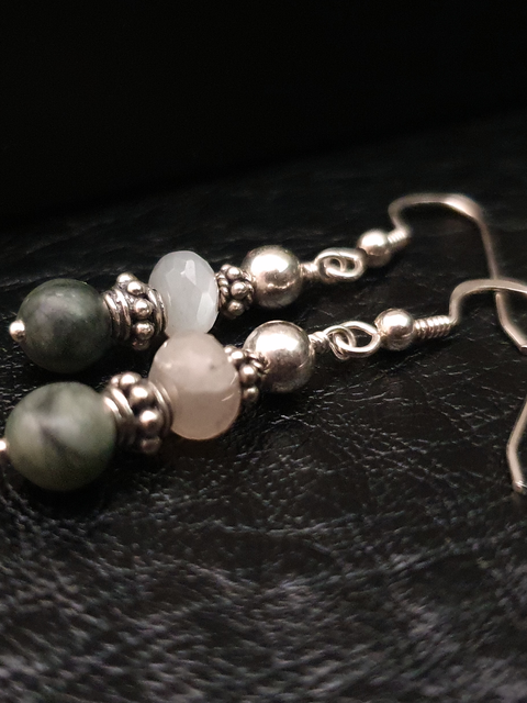 Sometimes simple is fitting for a leisurely stroll in the garden, or gathering together with a dear friend. Subtle hints of glory are to be found in the combination of Jungle Jasper, Moonstone and Silver.